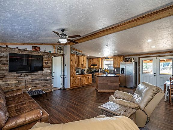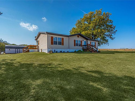 This home is a modern rustic farmhouses located on 3 open acres on paved roads. Open concept living with a kitchen that has been completely redone with knotty alder cabinets, butcher block countertops and has tons of storage. The flooring has been updated with wood look LVT. The living room has a beautiful rustic wood plank accent wall with tons of natural light. The master bathroom has been updated with subway tile surrounding the bath and sliding barn doors. The dining room has French doors that open up to a large covered deck and a fenced backyard. Large storage shed/workshop located in the back with electric. Located close to town, but perfect for those who are looking to have livestock or other farm animals.