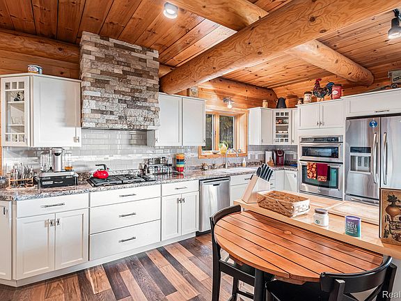 Enjoy breathtaking views of Lake Michigan from this stunning 3-bedroom, 3-bath home that perfectly blends warmth, character, and comfort. Rich wood accents and striking wood-beam ceilings create a timeless and inviting atmosphere throughout the open-concept living spaces. The living room features a beautiful fireplace framed by large windows that flood the home with natural light and capture the serene lake and wooded views. The kitchen is a chef’s dream, showcasing stainless steel appliances, and plenty of space for entertaining. A spacious 3-season porch extends your living area, perfect for morning coffee or evening sunsets overlooking the water. The finished walk-out basement offers even more room to relax or host guests, complete with a cozy fireplace and a full wet bar. Step outside to the expansive deck, patio, or fire pit area surrounded by mature trees—ideal for outdoor gatherings or peaceful evenings by the lake. The large primary suite is a private retreat with a spa-like bath featuring an open walk-in shower and granite vanity. Additional highlights include a charming loft bedroom and a large detached garage with abundant storage.