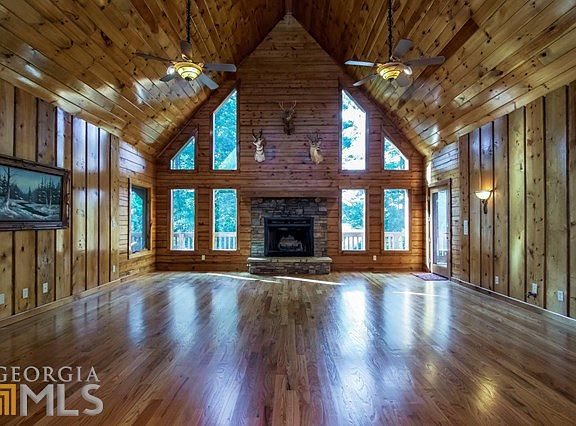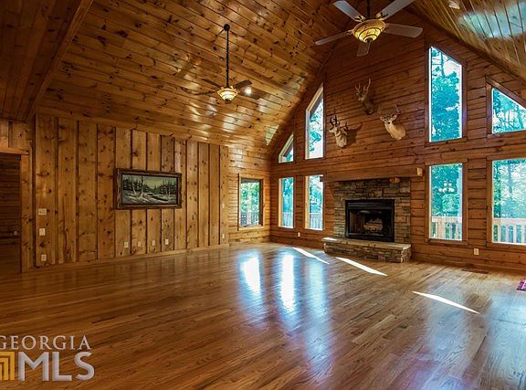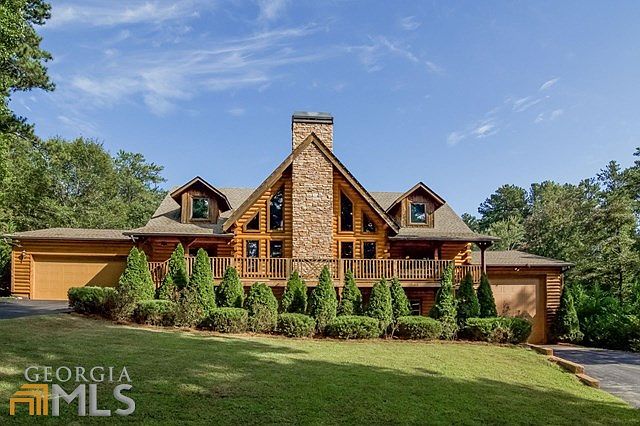 Builder's own beautiful custom log home, Buford, 5 bed/5bath, w/master on main,finished basement. RV garage 18x58. Open floor plan,vaulted great room w/fireplace, private yard, huge covered deck in back, large front porch. Kitchen w/granite, custom pullouts in most cabinets, tile backsplash. Hardwood floors throughout main floor & upstairs. Granite,marble & tile baths w/furniture style vanities.Finished basement w/granite wet bar, media room, pool table remains, workshop, bed/bath.