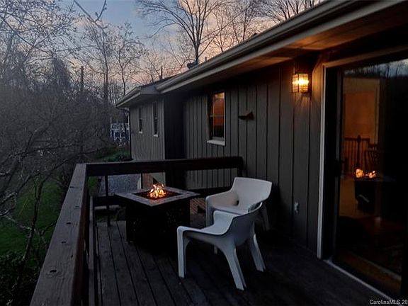 Attractive, bright and cheerful 3-bedroom, 2.5 bath home in Auburn Park, a desirable in-town neighborhood, close to the Waynesville Inn/Golf Course as well as all the amenities of Downtown Waynesville. Beautiful hardwood floors, spacious LR/dining area, two fireplaces (one gas, one wood-burning), huge media room with surround sound (could also be a family room, 4th bedroom, or easily converted to a studio apartment.) Over-sized two car garage with workshop space, overhead storage racks and plenty of room for shelving. Deck with gas fire-pit table and covered porch overlook large, private lot with fire-pit area, storage shed and plenty of room for pets and outdoor activities. Junaluska Elementary School District. Architectural shingle roof is 15 months old. Exterior was painted in 2019. Home warranty provided.