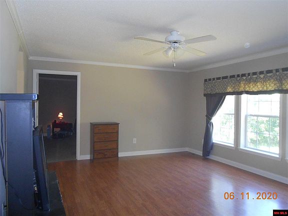 Manufacted modular home on 5 acres m/l with creek and natural spring. Split bedroom floor plan. Newly decorated, refrigerator, washer and dryer, all window treatments. Very private in the woods. Fully insulated 2x4 walls. Vinyl clad thermoplane windows.