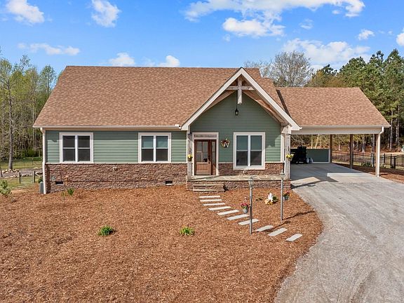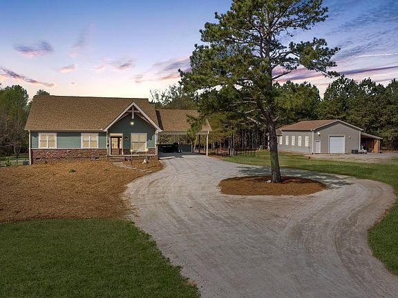 Welcome to your future private oasis on over 44 acres featuring a sprawling ranch that was custom designed by Frazier Home Design! Great property for horse lovers. There's a detachd heatd/cooled workshp w/1684 SF made for commercial use w/kitchen, 1/2 bth & attached 56 x 15 coverd shed! Gourmet kitchen w/granite countertops, hand built knotty cherry & reclaimed antique wood from Eastern, NC. Stainless steel appls include dble wall oven & 5-burner gas cooktp w/downdraft. Primary ste w/crwn mldg, reccsd lghts, & ceilig fan w/lght. Primary bth w/custm tile floors, custm cabinets, granite countertops & zero entry wlk-in shwer w/tile surround! FamRm offers 17' custm bltn shelvg w/black Walnut slab doors, dry bar w/beverage fridge & glass disply shelves. Daylight walk-out bsmt features sleek, no fuss stained concrete flooring, 1/2 bath, full wet bar made from reclaimed wood. Step outside to the fully equipped, coverd, stone outdoor kitchen & HUGE Party Pavilion!