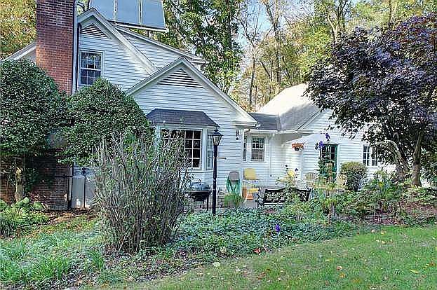 This amazing custom home is a must see! Ideal for entertaining. The kitchen has new quartz countertops and new double ovens. It opens into the large breakfast area and flows nicely to the dining and living room. There are two bedrooms and a full bath on the first floor, either one could be used as an office or a den. The second floor has two bedrooms and a full bath. Ample closet space and a walk-in closet in the master. Step outside to the lovely deck overlooking the multi-level yard that has been meticulously maintained with many annual flowers, gardens, trees, and stone walls. The basement is partially finished with a half bath and a walk out. It could be used as additional living or recreation space. The basement also has a spacious laundry room with sink and a work shop. Other features include hard wood floors throughout, new carpet in the breakfast room, dining room with bay window and bench with storage underneath, central air, owned solar panels and solar tank for water heating, 200 amp electrical service, generator hook up, new septic system only 5 years old, built in speakers throughout, newer boiler only 7 years old with cast iron baseboard heat registers, and a two car garage with a covered porch in between garage and house.
