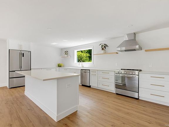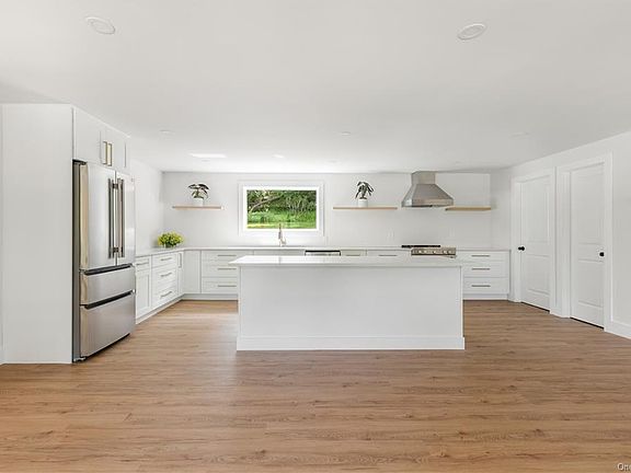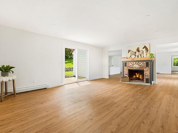 Modern Farm House Fully Reimagined! Brand new renovation from the top to the bottom with the most desirable amenities. Welcome to the one level living space. Stunning Kitchen with white quartz counters, Stainless appliance and opened to the Living Room and Dining area. Double Sided brick fireplace. Primary Bedroom with Luxurious bath featuring a double shower. Family room with Fireplace and sliders to back patio. Two additional bedrooms and hall bath. Fabulous modern style with just a touch of the old brick and wood to create a delightful home