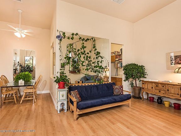 Immaculate workspace, and a two-bedroom one bath condo all on one level, with lots of light and possibilities. Maintenance free living in a convenient location close to shopping, restaurant, Rio Grande bike path, bus stop and other in-town amenities. Enjoy beautiful mountain views and sunsets from the large deck.