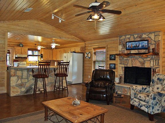Charming split-log home with minimal restrictions located close to town. Two living areas, large breakfast bar, handsome rock fireplace, stained concrete floors in living/dining with cork floors in kitchen. Located on one nicely treed acre with seasonal creek, storage/workshop, big back deck and parking pad for RV/boat. Short term rentals okay. Economical Wimberley Water. Perimeter and cross-fenced. This one wont last long!