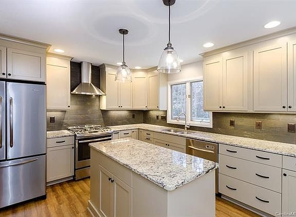 Well-maintained, spacious home in woodsy setting 10 mins from downtown Brevard. Amazing kitchen like what you see on TV with stainless steel appliances, granite, gas convection oven, island with wine refrigerator, counter space galore and custom cabinetry with pull out shelving. CoreTek Plus flooring will catch your eye as do the clerestory windows in the two-story high great room. Bright sunroom with skylights give a tree house feel when looking out. South side facing ridge, native plantings around property, fencing with landscaped walking path around the property. You will love this private feeling location and setting yet with gentle driveway and minutes to town or Pisgah Forest. Newer garage doors and so much more. Lower level spaces are wonderful for hobbies, entertainment/media or guests. Two areas for workshop or storage on lower level as well. Community water system for Falls Creek. Did I mention the remodeled, 5 star kitchen?? Wow!