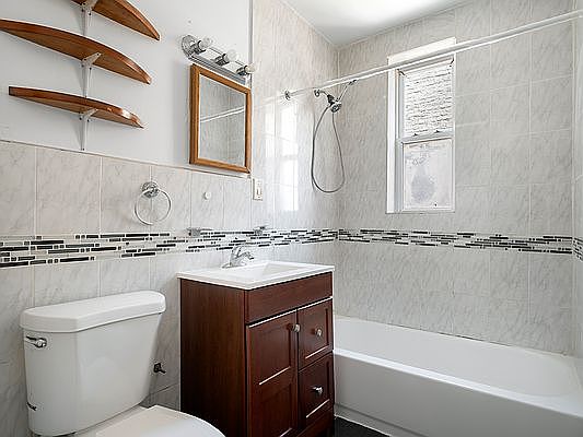 Crown Heights. Spacious two bedroom in immaculate prewar townhouse. Large eat in kitchen with custom oak cabinetry, stainless steel appliances and microwave. Living room with two oversized windows and beautiful French doors. Nice size master bedroom and decent size second bedroom. Windowed renovated full bathroom. Close proximity to great shopping venues along Albany and Kingston Ave. Walking distance to Kings County, Kingsbrook and Downstate Medical Center. Heat and hot water included.