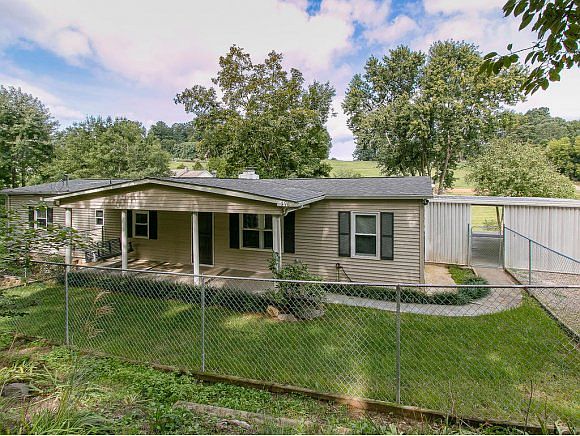 596 Mitchell Rd., Kingsport, Tenn. 37663-Wonderful 3 bedroom, 2 bath modular home on permanent foundation with built-in kitchen/den comb., large living room/dining room comb., huge, back, covered and heated and cooled sun-porch, basement has a separate entrance 2 bedroom apartment with upgrades of laminate interlocking/floating floor, all new bath fixtures, new ceramic tile in bath and sunroom; Property includes barn, situated on 3.24 acres+-, close to Colonial Heights and I-26 and Eastern Star Exit. 4 Yr home warranty - transferable to new owner. Currently leasing the downstairs part of the home but upstairs closet has a place for a set of steps to use by just one family if desired. Great opportunity and great rental or homeowner potential.