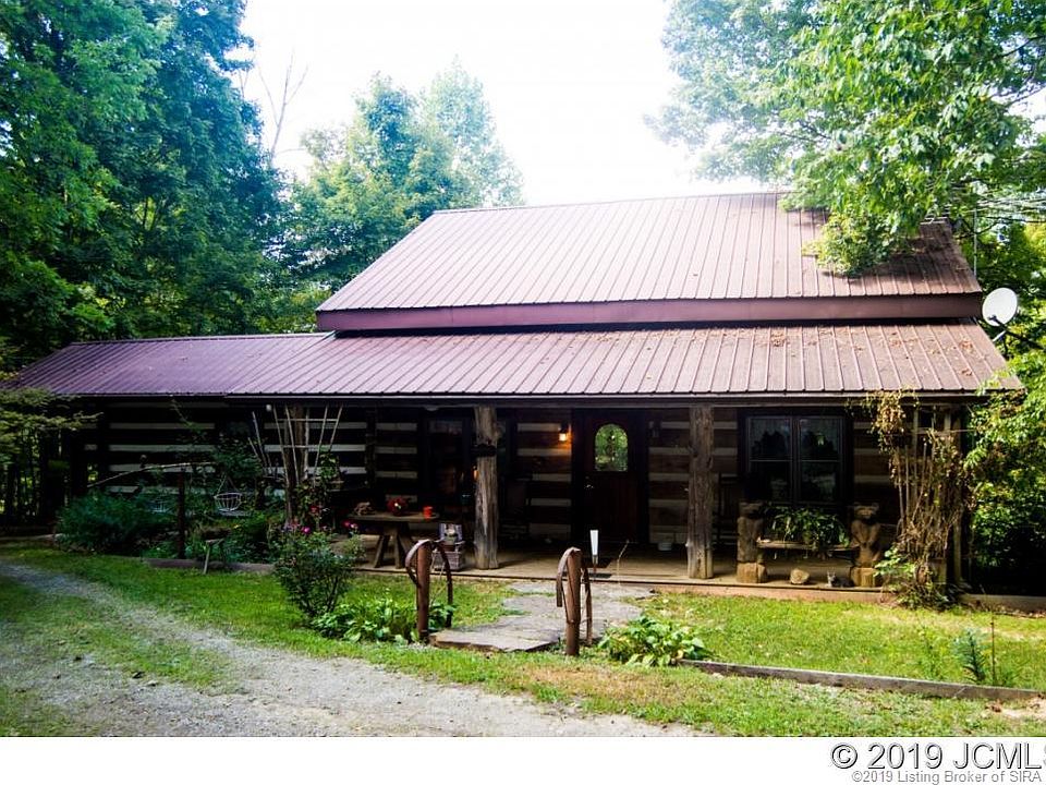 Gorgeous custom log home with covered front and rear porches overlooking 13 beautiful wooded acres. Conveniently located between Madison Indiana and Bedford Kentucky. This home is a must see with it's open floor plan and beautiful vaulted natural wood ceilings. Master suite on main level includes whirlpool tub and shower. Also check out the ultimate barn/workshop that includes a hydraulic lift!