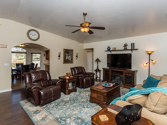 This beautiful split floor plan 3 bedroom/2 bath home is located on a 1/3 acre cul-de-sac lot with great views and wonderful outdoor living space. The kitchen/dining combo is great for creating and sharing wonderful meals and memories. The living room fireplace creates a cozy and comfortable atmosphere for relaxing and enjoying the company of others. Extensive hardwood floors in the living room and bedroom areas provide a feeling of rugged elegance to compliment fun features such as the sliding barn door in the master suite. The living room flows to an Arizona room which opens to a private patio and luxurious hot tub. The back yard is fenced with chain link and the entire property is landscaped to keep yard maintenance at a minimum. The 2.5 car garage provides that extra space for a
