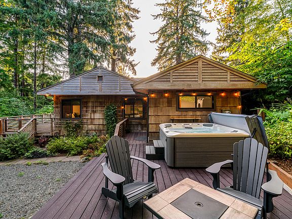 Find serenity nestled in the quiet north end of Cannon Beach in this detached duplex home on an oversized lot. Outside tsunami zone for peace of mind you'll find two separate units - Ideal for investment, full-time living, or both! Unit A: 3 Beds/1 Bath. Torn down to studs in 2008, w/new electric/plumbing, an extensive remodel & new roof in '22. Modern kitchen with a Wolf range, rough-edge granite countertops, & on demand hot water. Smart appliances, an inviting deck w/hot tub, & ample parking. Unit B: Studio apartment with full bath upstairs & modern full kitchen downstairs. Plus, a single car garage transformed into a dance/yoga studio w/endless potential. Enjoy the outdoors surrounded by gorgeous native landscape and trees just blocks from the beach & town. Your tranquil escape awaits!