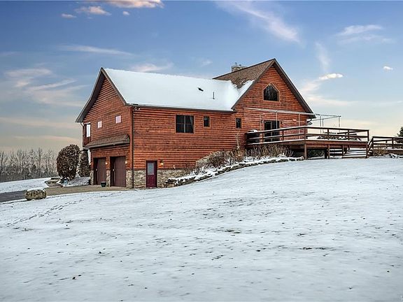 With a panoramic view that mesmerizes, you'll be captivated instantly by the covered front porch and majestic great room. Built for entertaining with its two sided stone fireplace, window surrounded breakfast room, huge granite island that easily pulls double duty for prep and seating, tons of storage in the alder cabinetry, and an awning covered deck - enjoy the outdoors from all sides. The circular floor plan flows nicely to the laundry room, master bedroom and additional bedrooms and free gas to the home adds tons of value. Off the attached garage enjoy another cozy fireplace for kids or the adult kids and an extra bedroom/ hobby/ workout room, with another bath, storage, and mudroom. The huge barn has a bar, work area, with an another barn and 3 sided storage bay, all 15 acres to enjoy.