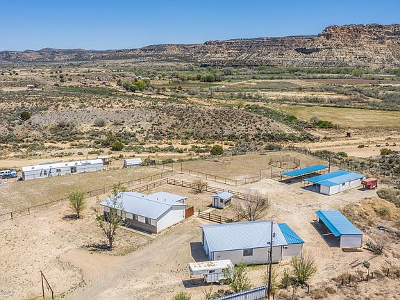 MINUTES FROM NAVAJO DAM AND QUALITY WATERS! This home qualifies for zero down USDA financing. HORSE FACILITY ON 2 ACRES, ACROSS THE ROAD FROM BLM LAND. Treat yourself and your horses to this beautifully kept move-in ready property. The updated home is 2 bedrooms, 2 baths, equipped with a pellet stove for alternative heat on colder days. Spacious bedrooms easily accommodate larger furniture. The Master has an en-suite bath and a roomy walk-in closet. The guest bathroom is tastefully updated. Easy care flooring throughout. Step out to the over sized garage/shop, with office space attached at the back. Nothing is amiss here at this facility, stalls, corrals, tack room, storage areas, and plenty of turn out area. The views are magnificent and peaceful. Call to see this property now. (The round pen is excluded).