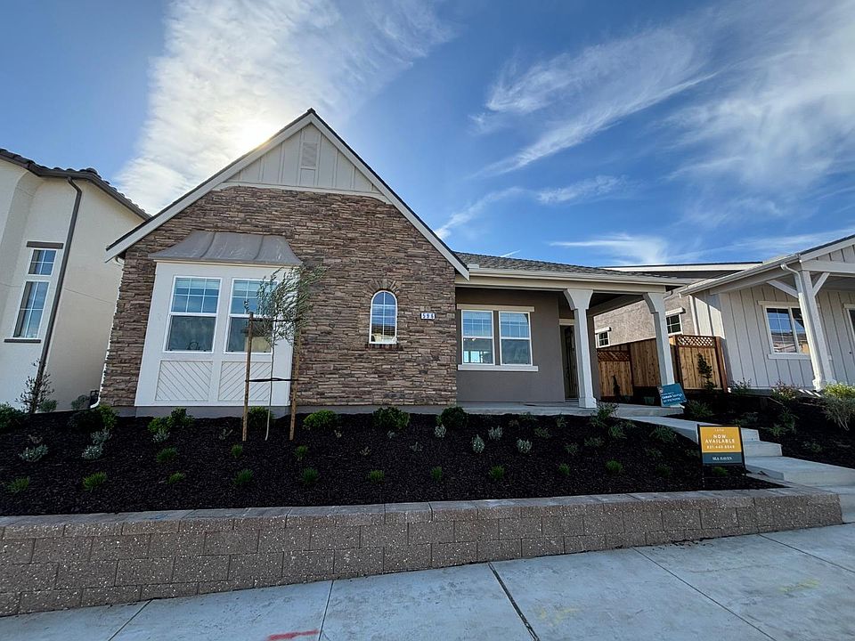 Step into the heart of your gorgeous new home! A spacious great room that effortlessly connects the living room and kitchen. The gourmet kitchen, a focal point of modern living, features chrome finishes, cast iron sink, ample counter space and a central island, inviting culinary exploration and socializing. Located just off the kitchen is a secondary bedroom, formal dining room and a bathroom all with front-facing windows. On the other side of the home, the luxurious Owners Suite includes a large walk-in closet, dual sink vanities, and optional sliding glass door with access to the covered patio. Beautiful Cottage elevation this home is located near a park.