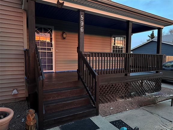 Monument Home with Modern Comforts This meticulously maintained home offers authentic Colorado living with breathtaking mountain views and sunsets from the welcoming front porch. Step inside and be greeted by stunning Beetle Kill Pine and White Cedar Tongue & Groove ceilings, which create a warm, rustic atmosphere. Kitchen & Living Areas The recently upgraded kitchen features transformed countertops, a stylish new backsplash, and a convenient touch-free faucet. Enjoy a new refrigerator and the luxury of a spacious walk-in pantry. (All kitchen appliances are included in the sale). Versatile Layout Main level: One bedroom +Jetted tub bathroom and a vaulted family room Upper level: Two bedrooms + full bathroom Basement: One bedroom + bathroom + plus a professional theater room (over $10,000 in equipment included) (The seller is offering a new carpeting/flooring allowance). Outdoor Living The thoughtfully xeriscape front yard offers ample space for RV parking, while the fully fenced backyard provides plenty of room for gardening enthusiasts. The property features newly planted apple, autumn blaze, and blue spruce trees alongside mature aspen trees. Recent Upgrades & Amenities: Fresh interior paint and front deck paint Outdoor private hot tub Custom-built shed with extra-wide door New vinyl siding Upgraded HVAC system with humidifier ADT system (not active) with carbon monoxide detection Additional Inclusions All kitchen appliances Washer and dryer Hot tub Complete theater equipment and screen Refrigerator Storage sheds Backyard metal planters and firewood rack While a train passes behind the property, the home's excellent insulation ensures minimal noise disturbance. 10-15 seconds (All information deemed reliable but not guaranteed—buyer to verify all info and measurements.) -Professional photos and floor plans are coming soon-