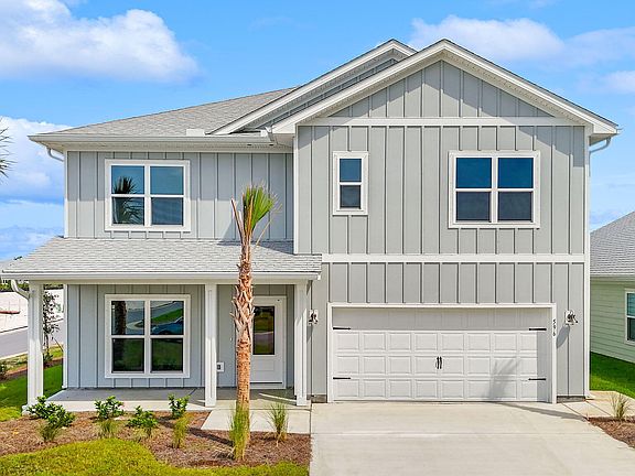 Discover coastal living at its finest in the Carol floorplan located at 596 Vermilion Circle. This home is nestled within the serene community of WindMark Beach. This two-story detached single-family home offers a harmonious blend of elegance and functionality. As you step through the entryway, you're greeted by a formal sitting room—a versatile space that can easily transform into an office or a separate dining area. The heart of the home lies in the large living room, seamlessly connected to the open kitchen boasting white cabinets and granite countertops. Stainless steel stove, dishwasher and microwave complete the look! Imagine hosting gatherings with friends and family in this light-filled space. The kitchen boasts an expansive center island, perfect for casual meals or entertaining. Picture yourself sipping morning coffee at the island while sunlight streams through the windows. Downstairs, a guest bedroom awaits, complete with a full bath. Ideal for accommodating visitors or creating a cozy retreat. Ascend the stairs to the second level, where you'll find additional 4 bedrooms. The primary bedroom features a spacious bath with a separate shower, a large soak tub, and a walk-in closet. EVP flooring throughout makes this home not only beautiful but durable and easy to care for. The 9-foot ceilings throughout make the homes feel spacious and grand! The exterior has long-lasting cement hardy board siding, perfect for the Florida summer heat. The two-car garage is perfect for your vehicles, golf carts and beach toys!