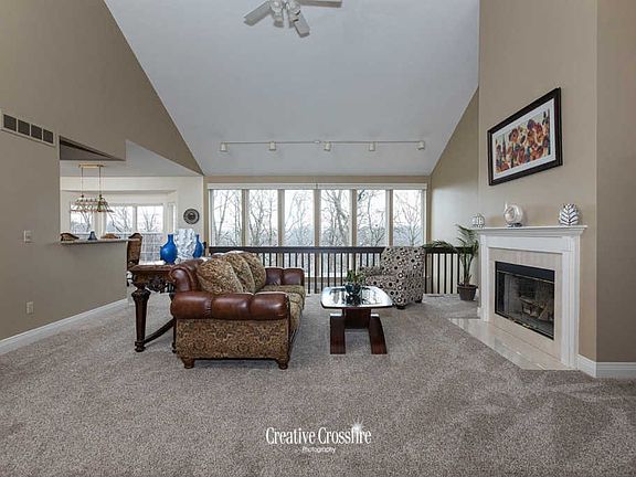 Atrium ranch on premium wooded cul-de-sac lot with a great view. Backs to wooded common ground. 4 bd, 3 bath, office & media room. Over 3800 sq ft of fin. living space. Entry foyer leads to soaring vaulted great room overlooking woods. Gourmet kitchen with white custom cabinets, granite counters, center island & bkrm. Sun room leads to private deck. Master suite with coffered ceilings, nice sized w/in closet, luxury bath with sep tub & shower. Formal DR with bay window, 2 nice sized bdrms & hall bath round off main level. Part fin LL features huge fam rm with WB FP, slate flooring, walk behind wet bar, 4th bedrm, media rm & office(which has a separate entrance). 2 level deck off of fam rm is great for entertaining. Zoned HVAC, roof 2016, fascia, soffit, gutter guards. Freshly painted interior. Hardwood floors in foyer, kit, bkrm, sun rm & MFL. Carpet 2017, insulated remote controlled blinds at atrium windows. Castle Pines Neighborhood pool.