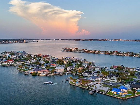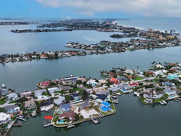 One or more photo(s) has been virtually staged. ***SELLER IS OFFERING FINANCING WITH FLEXIBLE AND VERY REASONABLE TERMS*** Welcome to waterfront living at its finest in the prestigious Bahia Shores neighborhood of St. Pete Beach! Situated on a rare corner lot with an incredible 240 feet of waterfront, this impeccably maintained 3-bedroom, 3-bath, 2-car garage pool home offers sweeping Intracoastal views from nearly every room. Move-in ready and thoughtfully updated, this tropical retreat features premium Pella impact windows and sliders, a gourmet kitchen with granite countertops, spacious living and dining areas, crown molding, and walk-in closets in every bedroom. Step outside to your private paradise with a pavered lanai and pool deck, a 15,000 lb boat lift with power—ideal for enjoying the best of Florida boating. The tile roof was replaced in 2014, and the HVAC system is just 2 years old. Located in a desirable neighborhood just minutes from sandy beaches, shops, dining, nightlife, and a quick drive to downtown St. Pete or Tampa, this home offers the ultimate blend of luxury, convenience, and coastal charm—with no HOA restrictions and Gulf access right from your backyard.