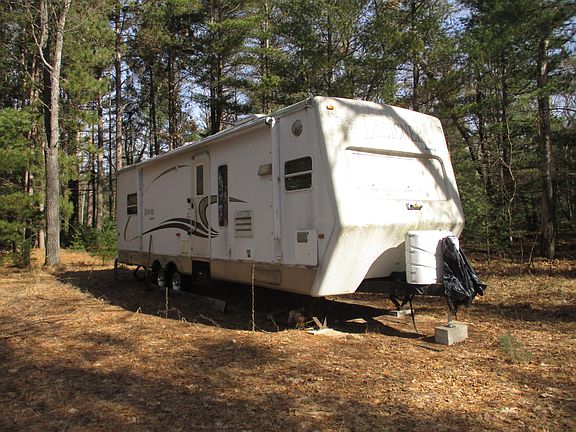 Peace and tranquility await you at this waterfront lot on quiet Big Wolf Lake. The lake has excellent fishing, canoeing, and kayaking, The lot is just over 2 acres and has 125 feet of frontage on the lake. Underground electric is on the lot along with a Jayco travel trailer and a shed for storage. This is the perfect lot to build your dream home or up north get away. Close to the trail system and state land.