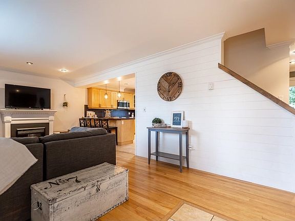 This is the townhouse you have been waiting for in GARRISON CROSSING! Step inside your front door to your OPEN living room/kitchen (NEW APPLIANCES!) which flows nicely into a separate eating area. Off the main floor there is a walkout patio which leads you into your fully fenced backyard- get ready for spring/summer nights! Gorgeous HARDWOOD floors on the main and upstairs. You have 3 nice sized bedrooms upstairs all with FEATURE walls. The larger master bedroom has its own full bathroom with double sinks. Downstairs there is another bedroom and laundry room with a SPACIOUS (NEW CARPET!) family/flex room for the kids or teenagers to hang out. This, as well as all the restaurants/shops/bus routes you need within walking distance! This can be yours. Book your showing WHILE YOU CAN!