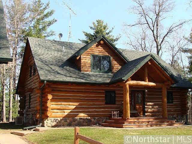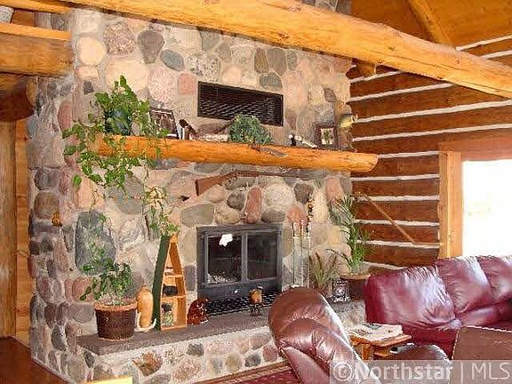 Log home on beautiful lot. Approx. 5 acres & 800' frontage. Massive fieldstone fireplaces on 2 levels, master suite, main flr laundry, loft /w BR, BA, & office space. finished walkout inc. large family rm & extra slping rm. Extensive lndscping & patio.