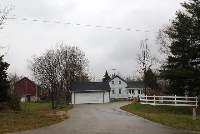 An original log home is hidden under the modern siding. Picturesque setting with a barn, pole barn and other outbuildings. Suitable for horses. The house and garage have new roofs. The furnace in the house is brand new. A little tender loving care will bring the interior to its full glory with the beautiful exposed logs.
