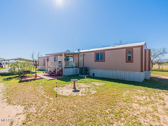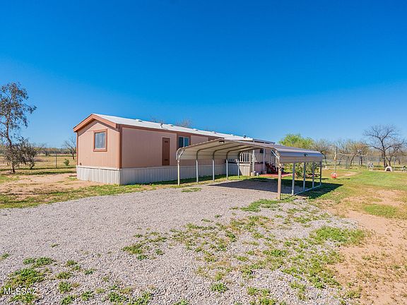 Welcome to your future homesteading horse property! Three bedrooms, two bath single-family home on approximately 4.26 acres, selling in present condition (a.k.a. AS-IS). Beautiful countryside of Tucson, AZ with panoramic views of sunsets and sunrises, and the quiet desert country living. The property is completely fenced with multiple animal enclosures, perfect for those who love animals. The property also features a barn-style Tuff building and another fenced area surrounding the home. You'll have plenty of parking space with four-car covered parking. The three-bedroom, two-bath manufactured home has been updated with HVAC in 2021 and vinyl flooring (no carpet), ready for you to make it your own! Don't miss out on this amazing opportunity. Schedule your showing today!