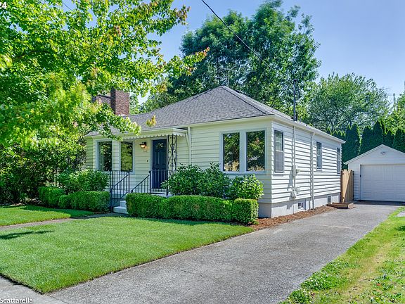 Tucked on a Tree lined street in Westmoreland this 1947 Cottage oozes Charm! From the scalloped front porch awning to the original hardwood floors this 3 Bedroom/2 Bathroom Home packs a punch! Spacious Living Room w/bay window & gas fireplace opens to the Dining Room. Vintage Kitchen w/original tile counters, cabinets to the ceiling, built-in's & cozy nook that overlooks the backyard. 2 Light & Bright Main floor Bedrooms feature hardwoods along w/the Hallway that is packed w/built-in storage! Main floor Hall Bathroom w/vintage tile tub surround & tile floor. Lower-Level boasts the 3rd Bedroom w/box beam ceiling & walk in closet, spacious Family Room w/electric fireplace & spa like Bathroom Oasis. Laundry room w/built-in storage & washer/dryer included. Private, Fully Fenced, backyard w/deck, mature plantings, raised garden bed, new gate & new sod + bark (front & back). Detached Garage + driveway for plenty of off-street parking. Fresh interior/exterior paint & carpet in 2024. Close to schools, parks, farmers market & some of Portland's best coffee shops & restaurants! Bike Score = 94 & HES = 6! [Home Energy Score = 6. HES Report at https://rpt.greenbuildingregistry.com/hes/OR10228695]