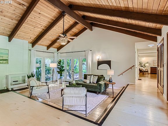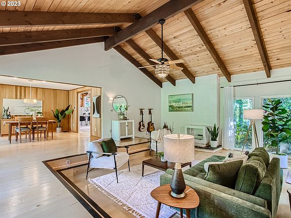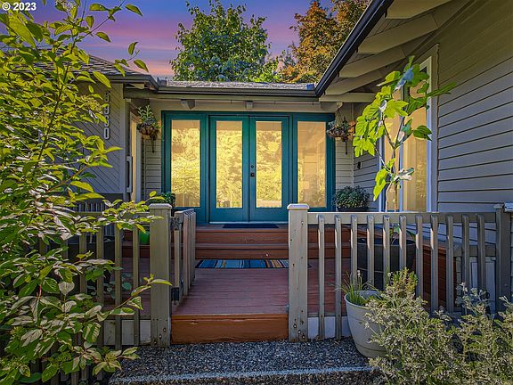 This exquisite NW contemporary gem combines modern elegance with natural beauty. With 3033 sq ft of thoughtfully-updated living space, this home sits gracefully on an enchanting and sprawling 1.35-acre lot.Step inside and be greeted by a bright and airy living space with its hardwood floors and beautiful vaulted wood beam ceilings. Adjacent to the living room, you'll find a formal dining room with a large octagonal picturesque window, bathing the space in natural light and providing a charming backdrop for gatherings. The kitchen is a haven for those who love to cook and entertain, featuring stainless appliances, induction range, sleek quartz countertops, and an ample center island. Escape to the master bedroom suite, complete with warm cork floors and an updated bathroom featuring a dual vanity and a jetted tub. The home has a dedicated office area. The basement and loft offer versatile spaces, and a detached two-car garage holds immense potential for a workshop or conversion into an ADU. Energy-efficient upgrades include new windows and insulation, a high-efficiency new HVAC system, and an electric car charger. Step outside into your very own private sanctuary. The large, landscaped lot is tucked away on a tranquil dead-end street and boasts a large, sun-drenched vegetable and flower garden, numerous fruit trees, a fenced yard for your animals, and a private trail leading to a peaceful stream. With its well-appointed features and idyllic surroundings, this property provides the perfect retreat for those seeking a quiet and peaceful lifestyle while still in a prime location for amenities and great schools. [Home Energy Score = 5. HES Report at https://rpt.greenbuildingregistry.com/hes/OR10218237]