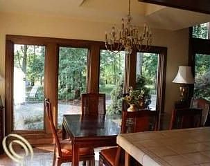 Lovely 2 story contemporary , tucked away on Pleasant Lake on a wooded lot with beautiful views. Cathedral ceilings highlight the wall of windows overlooking the backyard. The two large fireplaces accent both the great room and the family room loft and when combined with the large gourmet kitchen makes for a great entertaining space. Many upgraded features throughout plus the 2 bedrooms up both have their own bath. Partial basement.