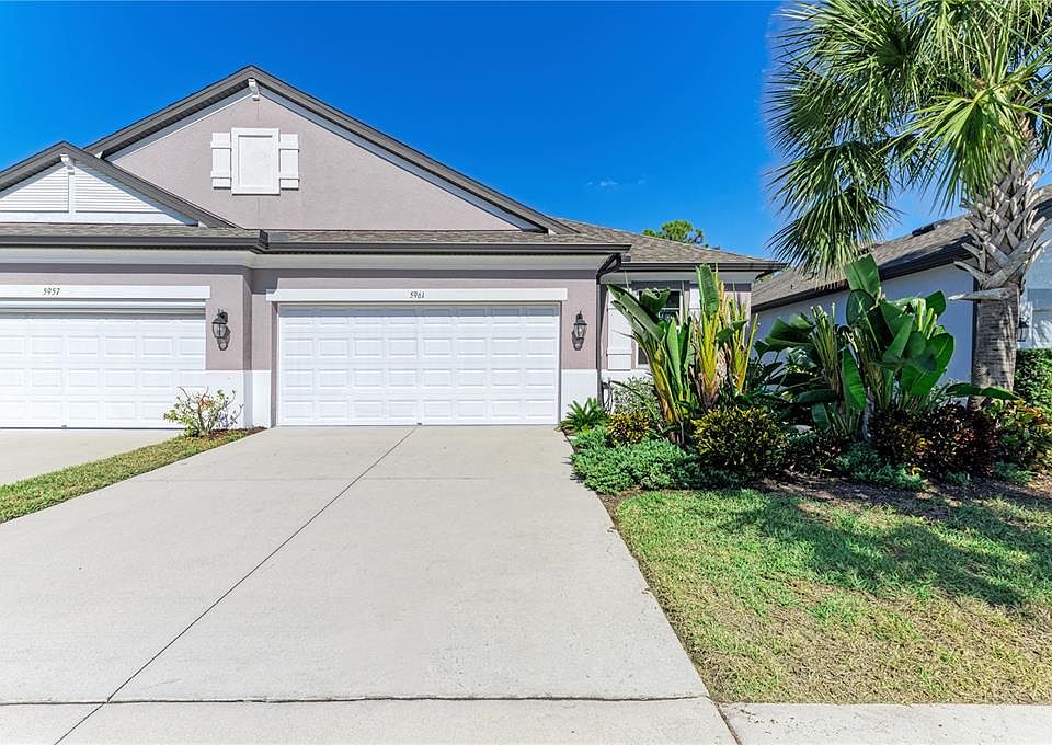 Tucked inside the quiet, gated enclave of The Amberly Community, this MI Homes Sapphire-series villa is truly move-in ready-clean, meticulously cared for, and offering the kind of low-maintenance living you come to Florida for. The 2-bedroom + den layout flows effortlessly with tall ceilings, an open kitchen with solid surface counters and walk in pantry, and a welcoming living room made for both relaxing nights and easy entertaining. The primary suite features dual sinks, a spacious walk-in closet, and the privacy of a split floor plan, giving the home a calm, refined feel from the moment you walk in. Step onto the partially covered lanai and enjoy a quiet backdrop with no rear neighbors-just peaceful mornings and shaded evenings. Amberly is a boutique, gated community known for walkable streets, friendly neighbors, reclaimed water irrigation, and a sparkling community pool perfect for unwinding after a long day. Within one mile, you'll find everyday essentials like Home Depot, Publix, Winn-Dixie, Three Natives, Dog Perfect, salons, fitness studios, and local favorites such as First Watch and Gecko's Grill & Pub. Drive 10 minutes and you're in the heart of Lakewood Ranch, Waterside Place, or the University Town Center Mall (UTC)-with endless shopping, rooftop dining, Whole Foods, Nathan Benderson Park, and walkable paths. Head west and the Gulf beaches, Anna Maria Island, and top seafood spots are a short trip away. A clean, move-in ready home in a community where homes rarely hit the market. Call today to schedule your private showing-Amberly opportunities don't last.