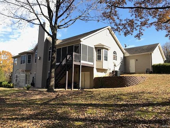 Showings to start Fri, Dec. 4 @ 1pm. Welcome home! Beautiful ranch home in Desloge Estates on 5.27+/- ACRES w/PRIVATE PARK LIKE SETTING in a well established subdivision. Tree canopy welcomes you down the main road. And enjoy the common ground pond right across from house. At home, main floor boasts entry foyer leading to separate dining room, large great room w/gas FP & vaulted ceilings and continues to kitchen & breakfast room w/ easy access to screened-in porch w/ fabulous view of backyard. Kitchen has ample cabinets, countertops and center island & pantry. Main floor laundry too. Generously sized master bedroom ensuite will delight w/ dual bowl vanity, whirlpool tub & separate shower and walk-in closet. 2 addt'l bedrooms & full bath on main level. W/O Lower level offers family/rec room w/ wood burning fireplace, full bath & addt'l sleeping room. Huge storage area in basement. Large patio. 3 car oversized garage. Close to Highway I-44 & Shaw's Nature Reserve in Gray Summit.
