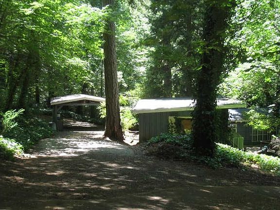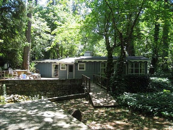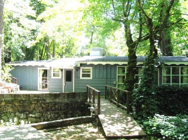 CABIN ON THE CREEK. END OF THE LANE LOCATION FOR THIS 1 BR, 2 BA HOME. TREMENDOUS WATER FEATURE INCLUDES YEAR ROUND CREEK, POND, ROCK WALLS, WALKING BRIDGE AND FISH. LAY IN BED AND LISTEN TO THE SOUNDS OF NATURE, PRIVATE, SHADED, AND COZY. ROOM TO BUILD ACCROSS THE CREEK. NEW SEPTIC SYSTEM, HVAC AND WALKING BRIDGE. TILE KITCHEN AND BATHS, INSIDE LAUNDRY, FLOOR TO CEILING WINDOWS SURROUND THE LIVING SPACE. MASTER BEDROOM HAS WALK IN CLOSET, UPDATED BATH, AND GLASS DOORS TO PATIO. SHOP IS IN NEED OF REPAIR BUT HAS POTENTIAL AND CHARM.