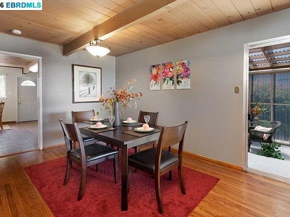 Great San Pablo Bay views! Spacious home with beamed ceilings, refinished hardwood floors, plus room downstairs for office/ family room, backyard patio with enclosed patio room, large eat in kitchen with granite counter tops & laundry area, attached 2 car garage with interior access, security system, sewer compliant.