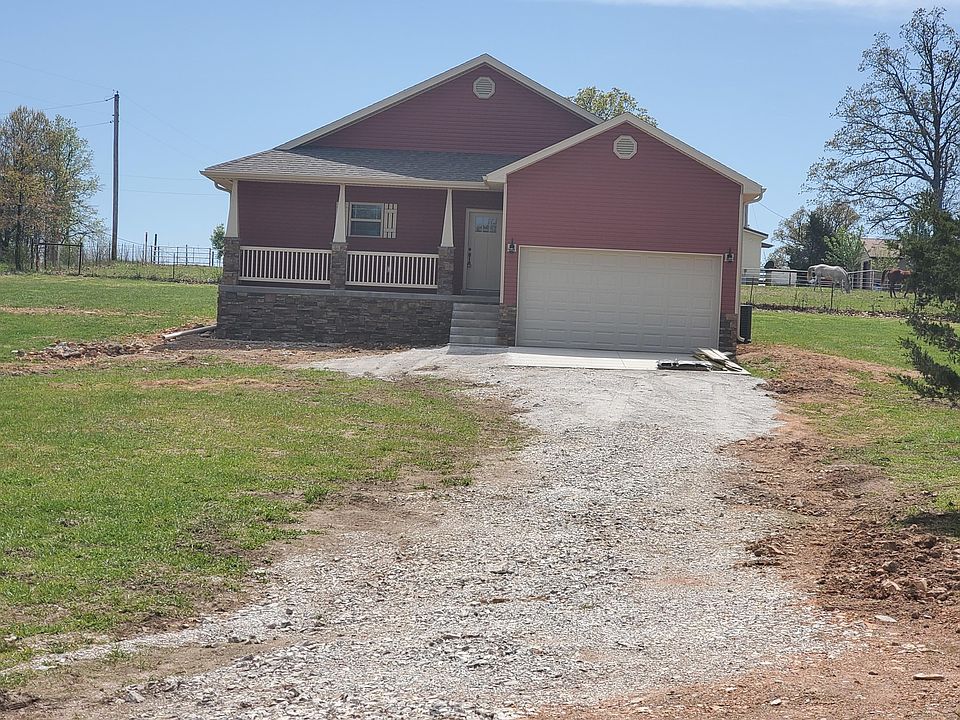 Y'all this house is seriously so cute. nestled in the foothills of Racine but close enough to Joplin, Seneca and Neosho to not feel desolate. This brand new construction features 3 bedrooms, 2 bath and a 2 car garage. Kitchen and living room is open concept to make cooking and entertaining much easier (and more fun)!Kitchen has granite counter tops and real hardwood floors.