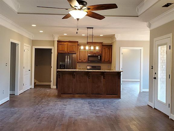 This full brick home is situated on a level corner lot in Timberline in Southside. Behind the iron entryway, this home has 3 bedrooms with 2 baths on the main level & a bonus room/bedroom with bath upstairs. A gas log fireplace with rock surround will decorate the living room, while granite & black stainless appliances will add to the beauty of the dark maple cabinets. The main level offers an open split floor plan with multiple trey ceilings, extensive crown mold, with hardwood & tile throughout. Both the dining room & breakfast area boast natural light. Other features include a nice size laundry room, a walk-in pantry, a walk-in attic, a covered back porch, & a wooden privacy wall!