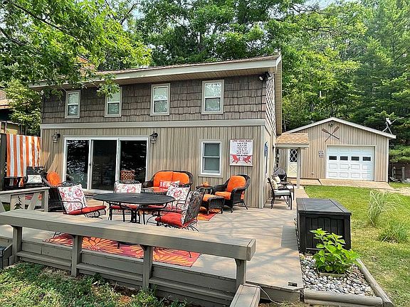 YEAR-ROUND HOME OR WEEKEND RETREAT, THIS WATERFRONT HOME HAS IT ALL! Located on ISLAND LAKE which is a 65 Acre Spring Fed Private Lake. 64' of Sandy Bottomed Lake Frontage. Come Enjoy Boating, Swimming, Kayaking, Paddle Boarding or if Fishing is your thing, there are Bass, Crappie, Perch, Blue Gill & Pike to catch. This home has 3 Bedrooms (1 on main level), 2 Full Baths, Home office and Craft Room. Beautiful Knotty pine throughout the Lower level. NEWLY installed 12 foot Window Wall for you to enjoy the gorgeous lake views. Plus a Family room for watching TV or just hanging out. Expansive decking for entertaining or just relaxing lakeside.1.5 Garage. Maintenance free exterior. Home is Move-In ready and comes partially furnished.