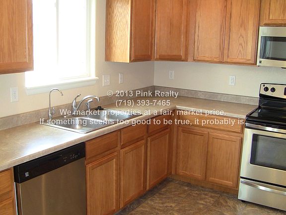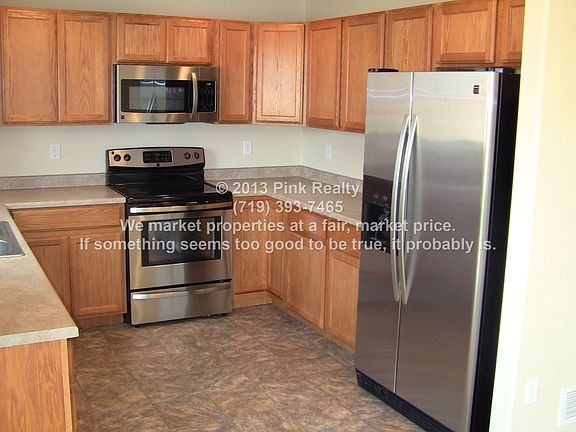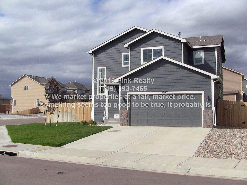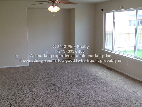 Gorgeous new-build in a quiet neighborhood. This huge home is well maintained and features a large back yard, stainless appliance package, air conditioning, radon mitigation system, master bath with spacious walk in closet, water softener, Jack and Jill bath for the two additional upstairs bedrooms, fully landscaped yard, and fenced back yard. Hurry! Properties in this neighborhood never hang around long. In addition to the three upstairs bedrooms, the basement could be used as a bedroom suite or office. Offered on rent to own terms. Call for details. This home is not on goggle maps. South Powers to Grinnell to Goldfield left to Dancing Moon Way, left to San Mateo. Neighborhood Description Near fort Carson and easy access to Peterson AFB, close to scholls, shopping and entertainment.