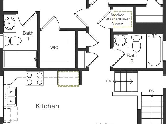 This low maintenance style home features 1,031 sq.. ft. of modern open living space. Upon entry from the 2-car garage lies a versatile flex space. The Moreno features a main floor master, attached master bath with a free-standing shower, a walk-in closet, and a second bedroom with an open living room which provides easy access to the kitchen and dining room. It includes a convenient laundry space, an additional full bathroom, and an open balcony with large windows which provide an abundance of light. These homes are built in cul-de-sacs with paved driveways.