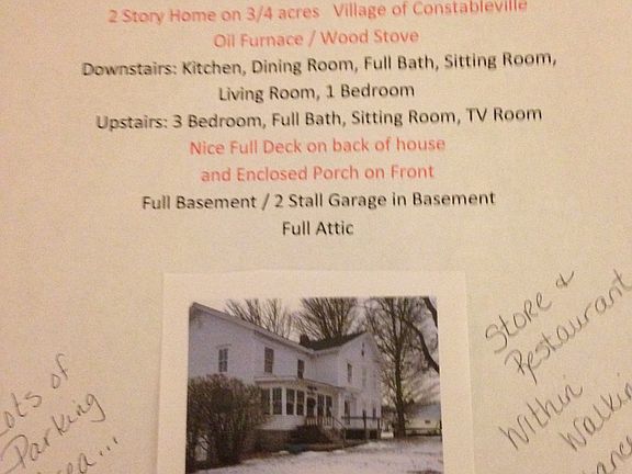 1-2 Family Home For Sale Great Income Property or a Nice Family Home 5564 James St Constableville, NY 13325 Contact: 790-8865 or 790-9361 2 Story Home on 3/4 Acres in Constableville Oil Furnace/Wood Stove Propane Water Heater less 5 years old Shingled Roof 4 years old Upstair windows new double pane windows Nice Full deck on back of house / Enclosed Porch on front Full Basement with 2 stall Garage Full Attic Newly remodeled kitchen with handmade pine cupboards Hardwood floors in kitchen/dining area South Lewis School District Walking distance to store Close to all snowmobile trails