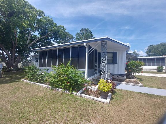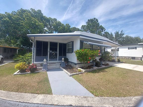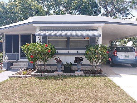 MOVE IN READY!!! FURNISHED!!! LOW LOT RENT!!! Looking for an IMMACULATE home with LOW LOW LOT RENT??? Conveniently located to historic downtown New Port Richey and and close to beaches!! Located in Orange Heights Mobile home Park. Lot Rent is $440, includes water, sewer, trash and lawn. This is a 55+ plus pet friendly community. Very small quiet park within in walking/biking to downtown which offers shops, pubs, restaurants, cafe and icecream shops and beautiful waterfront Simms Park. PRIVATE SHADED BACK AREA NO NEIGHBORS BEHIND.... BEAUTIFUL LAMINATE FLOORING. NEWER ROOF AND AC...ENTIRE HOME HAS NEW EASY CLEAN TILT IN WINDOWS WITH WOODEN BLINDS!! 1972 .. 576 square feet plus large enclosed sun room/lania . Home is completely UPDATED and very well maintained. This home is immaculate inside and out. The open kitchen has newer appliances, flat top range with overhead built in microwave. Bright white cabintry in kitchen with plenty of counter space and a pantry closet. NIcely furnished Large living room is cozy with plenty of windows and has ceiling fan. Home has baseboard throughout and nicley painted walls with no seams. The master is large enough to accomodate a queen bed, has a built in dresser area and nice size closet. Master bath has a large WALK IN shower with tile floor. Large vanity with ample counter area and 2 storage cabinets. There is a linen closet in hallway. There is a front entrance that leads into a large enclosed sunroom with brand new VINYL WINDOWS WITH SCREENS!! There is a window air conditioning year for making this space useable year round. CLEAN FRESH Painted 2 car carport with utitliy shed that housed washer and dryer and gives additional storage. You will love the landscaping around this home and PRIVATE BACKYARD with nice sized private patio area and plenty of shade for day or evening enjoyment!! THIS IS A MUST SEE HOME IF YOU ARE LOOKING FOR AFFORDABILITY..PRIVACY.. CONVENIENCE... MAINTANANCE FREE!! Conveniently located to New Port Richey, Trinity, Tarpon Springs, Clearwatar and all the amazing Tampa Bay activities!! Walking distance to grocery and post office. CALL AGENT CINDY TO Schedule a showing of this home.