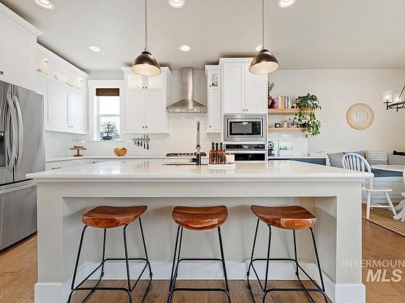 With room to breathe and practically brand new, this gorgeous home is situated on a large, oversized and quiet homesite perfect for enjoying the warm Boise evenings. Featuring a kitchen design for the chef and entertainer along with big, beautiful rooms this home fits the needs of just about everyone. From the guest suite on the main level, numerous built in shelves, custom crafted covered patio, rocking chair front porch & storage galore, this home welcomes everyone to live the lifestyle they desire. With a sprawling backyard and no side neighbors, the gardener, swing set lover, backyard bbq’er and tail wagging members of the house will find pure bliss and plenty of room to move. Chip and JoJo would love their modern farm style influences throughout with gorgeous cabinetry, large planked wood floors, and built in kitchen banquette. Enjoy all of the amenities The Oaks provides as well, with parks, saltwater pools and so much more!