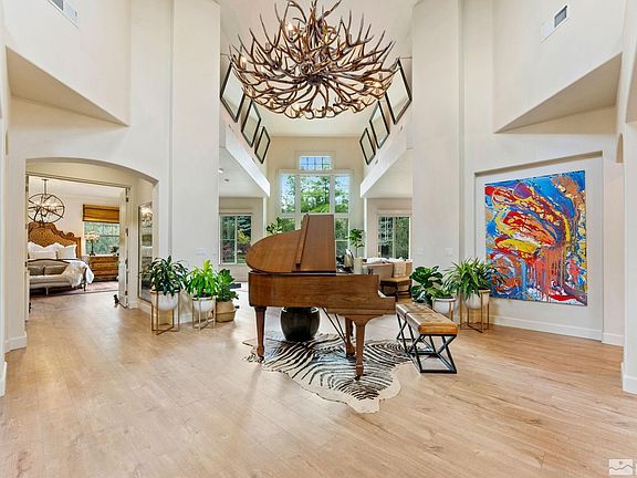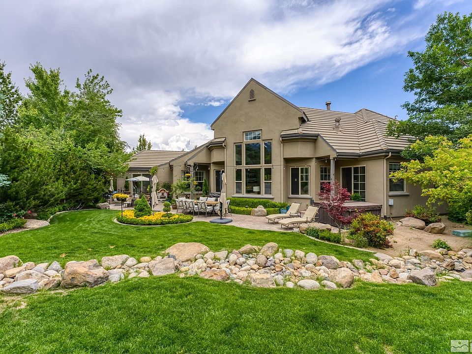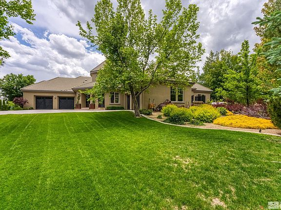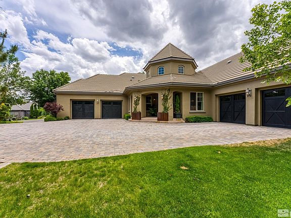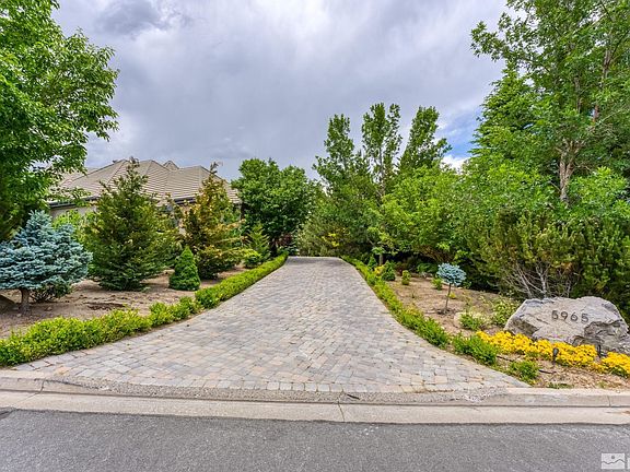 Impeccably renovated single-story home in Montreux! The extraordinary use of steel, solid cement, granite, quartzite, and Venetian marble provides a luxurious, contemporary, and move-in ready aesthetic. Upscale Thermador and KitchenAid appliances, modern glass wine cooler, Restoration Hardware fixtures, rare indoor & outdoor wood-burning fireplaces, and so much more. Light & Bright with exceptional natural sunlight and beautiful mountain views. Close access to everything the Montreux lifestyle has to offer., Welcome to Montreux, Northern Nevada’s premier gated golf course community. This luxury home on 5965 Cartier offers desirable single-level living with a private Primary Suite on one wing, two Guests Suites on the other, and an inviting flex space for an Office or Den. The Entertainer’s Kitchen showcases an extended quartzite slab island, Venetian marble backsplash, Thermador ovens, dishwasher, and 5-burner cooktop, KitchenAid refrigerator, beverage and wine fridges, and an impressive 276-bottle backlit wine cooler. The wood-burning fireplace renovation is remarkable with its custom steel and solid cement hearth. The Primary Suite presents a stunning steel and granite temperature-controlled fireplace, modern LED vanity mirror, and dual closets with expansive custom mirrors and storage. The Den/Office space features a contemporary Birch wall element, custom crown molding, and two sleek built-in desks. The sunlight pours in with additionally installed windows, glass sliders, and tubular solar lights, which brighten the home with natural daylight. Smart Home elements include Apple HomeKit with motorized shades and integrated Lutron lighting, and Smart toilet/bidets throughout. Additional upgrades include Restoration Hardware fixtures, tankless water heater, and garage EV charger. Expertly landscaped exterior, with inviting wood-burning fireplace, water feature, two connecting decks, spa, and innovative outdoor illumination. This home on 5965 Cartier is conveniently located near Montreux’s gated entrance, with close access to the Montreux Golf & Country Club and all its world-class golf, dining, and fitness amenities. The Reno-Tahoe International Airport and the Mt. Rose Ski Resort are less than 20 minutes away, and it’s just a short 30-minute drive to beautiful Lake Tahoe.