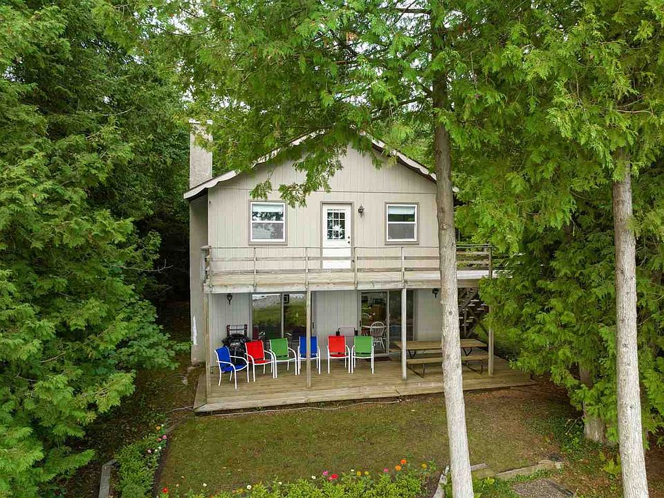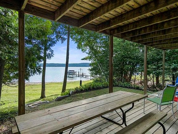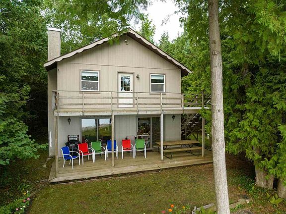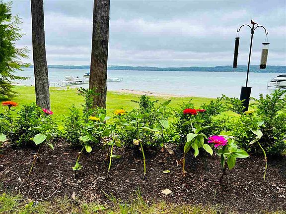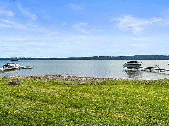 Trade in the bustling, busy life for peace and quiet here on Ferris Lewis Lane. Nestled amongst cedars, pines, and birch trees on lucent Lake Charlevoix, this home boasts privacy and stellar views of nature by way of 75 feet of waterfront and a private paved drive well off the road. Featuring 4 bedrooms and 2 bathrooms with ample storage, an open kitchen and living space with double sliding doors to your lakeside patio, and a retro red gas fireplace adding character and charm. With a sprawling master bedroom giving access to the upper level deck, enjoy your morning coffee by way still water, early morning paddlers, and clean air. With a two car garage complete with a work bench and space for all water toys, come to the cottage, bring those you love! Your retreat awaits.