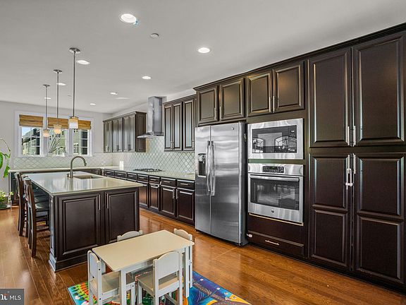 Stunning Colonial townhouse offering 3,062 square feet of beautifully designed living space, 4 bedrooms, 3 full baths, 1 half bath, and a 2-car garage impeccably maintained by the original owner in highly desired Shipleys Grant. The fully finished lower level welcomes you with a spacious foyer and a versatile mudroom area, perfect for a home office or additional living space, with direct access to the garage. Eclectic and elegant design choices define the open-concept main level, starting in the inviting living room featuring plush carpeting and a striking modern accent wall. A conveniently located powder room adds to the home’s functional layout. The gourmet eat-in kitchen is a chef’s dream, showcasing hardwood floors, quartz countertops, stainless steel appliances, ample rich cabinetry, an island with seating illuminated by stylish pendant lights, and a chic arabesque backsplash. The adjacent dining area exudes warmth and character with an accent wall and hardwood flooring. On the upper level, you’ll find a laundry room, two full bathrooms, and three spacious bedrooms, including the bright and airy primary suite with a tray ceiling, a walk-in closet, and an ensuite featuring dual sinks. The uppermost level offers a private retreat, complete with a bedroom, attached full bath, walk-in closet, and access to a sprawling rooftop deck—ideal for relaxing or entertaining. Enjoy resort-style amenities in Shipleys Grant, including a community pool and clubhouse.