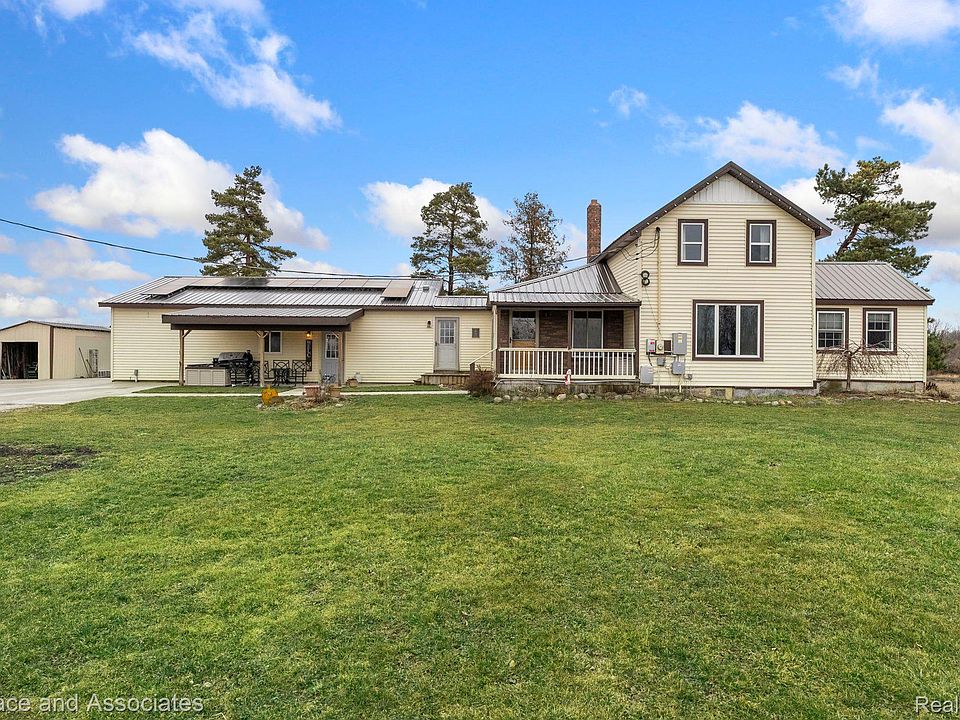 Welcome HOME!!, where timeless charm meets modern convenience in this picturesque farmhouse nestled on approximately 2.5 acres of serene countryside. Step inside this two-bedroom, two-full-bath home, and you'll be greeted by a seamless blend of rustic elegance and craftsman finishes. The entry level boasts a spacious primary bedroom complete with an en-suite bathroom. Entertain with ease in the heart of the home – a cozy living area adorned with laminate and hardwood floors that exude warmth and character. The kitchen is equipped with stainless steel appliances and ample cabinet space. Adjacent to the main living space, discover a large 30x40 attached garage, meticulously maintained and heated for year-round comfort. Whether you're a car enthusiast or in need of additional storage space, this garage is sure to impress. Outside, the property offers a host of amenities designed for outdoor enjoyment and convenience. Park your RV with ease thanks to the electric hook-up, and make use of the expansive poured cement apron for ample parking. This home has many recent updates including a new roof, HVAC, windows, cement work, electrical, flooring, fixtures, etc! Located just five minutes from both Lexington and Croswell, this home offers the perfect balance of tranquility and convenience. Enjoy easy access to nearby beaches, shops, restaurants, and parks, ensuring endless opportunities for recreation and relaxation. Call to schedule a showing today to see everything this place to offer!