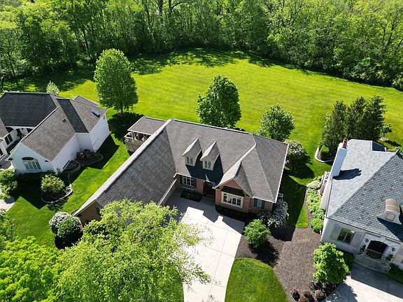 One-owner truly custom-built home on one of the best lots in sought-after Chapman's Claim at Prairie View! Mature trees line the neighborhood streets like canopies! This ranch is so spacious on the main level, and then the lower level - wow! 3082 square feet of living space on the main level and another 3082 square feet in the lower level for a total of 6164 square feet! 11' & 12' ceilings on the main level. Hardwood entry extends into the kitchen & family room. The kitchen has so much granite counter space, breakfast bar, stainless appliances with double oven & gas cooktop, and is open to the family room with gas fireplace and custom built-ins. Large windows afford expansive views of the open common area, then trees, then Prairie View golf course! This is all enjoyed from the large screened porch and stamped concrete patio too - no one behind you as far as you can see! There's a formal dining room up front and the living room with built-ins and second of three fireplaces, and that view out the back again! Work from home in style with the dedicated office with double doors & built-ins. The primary suite has a tall tray ceiling with accent lighting and a generous bathroom with updated tile floors (all baths), two large vanities, large tub & shower and a big walk-in closet with yet more built-ins. The daylight lower level is very bright with natural light. Each of the four bedrooms is oversized and there are two full baths. There's more living space with an enormous 39' x 19' great room with the third gas fireplace and built-ins, and still 580 square feet of clean storage space w/ built-in shelves. Extensive crown molding & trim throughout plus many more custom features! Oversized heated 3 car garage with epoxy floor & storage cabinets, mature trees, sprinkler system. Roof and HVAC 2022. Expertly maintained, neutral and utterly spotless, 100% move-in ready!