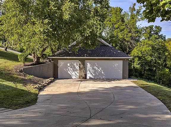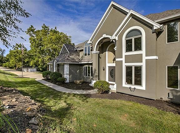 Gorgeous 1.5 story home located close in 5 acres. Fantastic view from back of home of downtown Kansas City Skyline. Home is loaded w/custom built-ins. Mature trees throughout acreage w/bonus fishing pond (stocked). Total of 8 garage spaces between home and detached garage. New roof. All new exterior and interior paint.