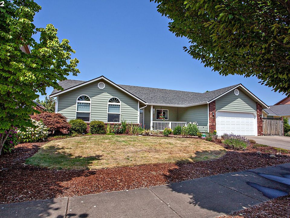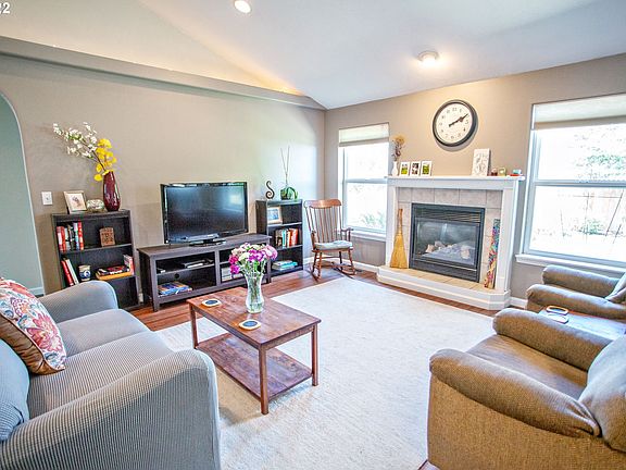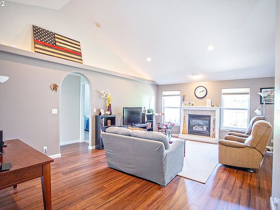 Fully updated single level home close to schools & parks! Fantastic floor plan boasting new bamboo flooring, large primary suite w/ cultured marble floor/shower, beautiful kitchen w/ quartz counters, gas fireplace, vaulted ceilings, XL 2nd BR/flex room, forced air heating/cooling, covered patio- all sitting under a new roof! Two garage garage PLUS RV parking.